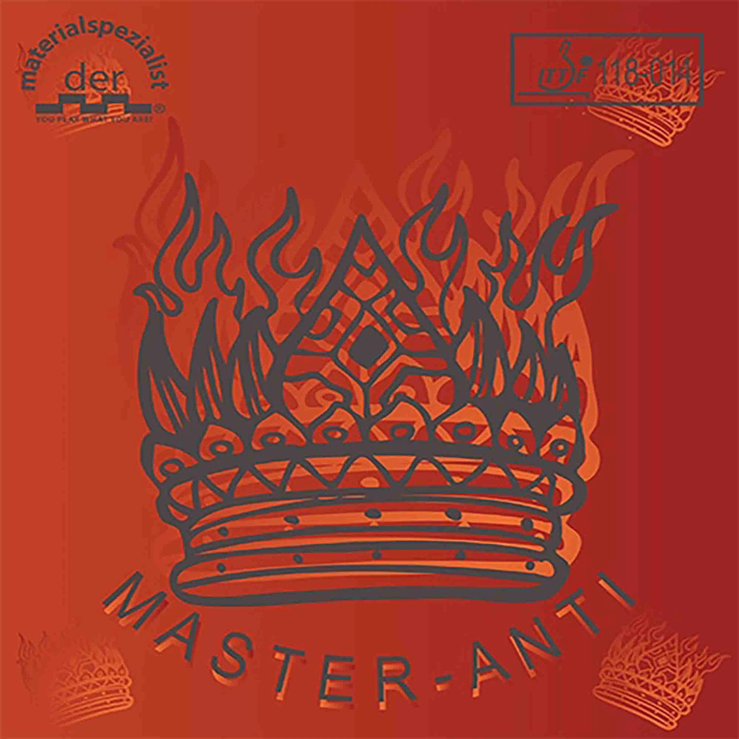 Mit MASTER- ANTI prĂ€sentiert der-materialspezialist ein klassisches ANTI TOP Obergummi kombiniert mit einem stark dĂ€mpfenden Schwamm. Extra lange dĂŒnne nach innen gerichtete Noppen sorgen fĂŒr den nötigen Störeffekt und ermöglichen Ă€uĂerst effektive Störmanöver. Passive BlockbĂ€lle und abgestochene Topspins sind fĂŒr den Gegner extrem unangenehm da die richtige EinschĂ€tzung des generierten Spins nur schwer möglich ist. In der Tisch fernen Verteidigung und aus der Halbdistanz spielen Sie mit gröĂter Leichtigkeit flache RĂŒckschlĂ€ge mit beeindruckenden Ballflugbahnen. Mit MASTER- ANTI kann leicht und sehr effektiv angegriffen werden, wobei diese SchlĂ€ge durch starke momentane Ballverzögerung ein weiteres Störpotential bieten. Trotz des hohen Störpotentials verfĂŒgt der MASTER- ANTI ĂŒber sehr hohe Kontrollwerte welche den Belag nicht nur fĂŒr technisch versierte Spieler interessant macht.