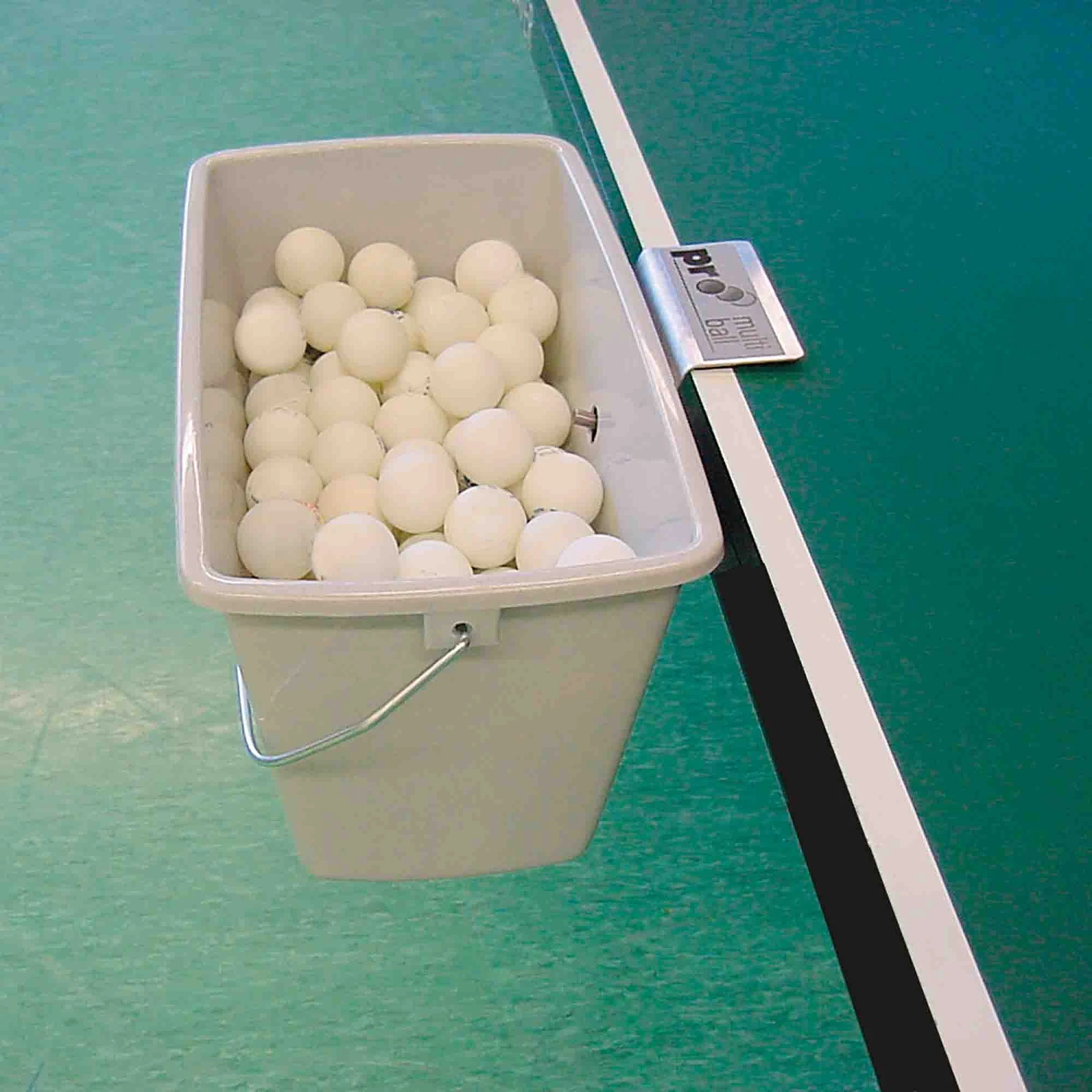 BehĂ€lter mit Halterung fĂŒr das Balleimertraining. Variable Befestigung direkt am Tisch. Durch die Konstruktion an allen Tischmodellen verwendbar. Der Trainer kann je nach Trainingsschwerpunkt die verschiedenen Tischpositionen auswĂ€hlen, ob seitlich am Tisch oder an der Grundlinie. Hierdurch ist ein effektives Balleimertraining möglich. Fassungsvermögen 180 – 200 BĂ€lle. Die BallschĂŒssel wird ĂŒber die LĂ€ngsseite eingehĂ€ngt und durch den Metallstift justiert. Der Preis fĂŒr die Grey Box enthĂ€lt keine BĂ€lle.