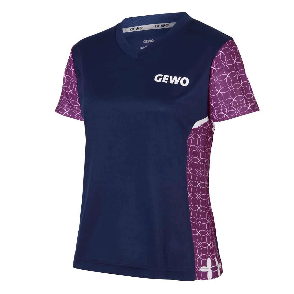 Lady T-Shirt mit V-Ausschnitt, gedrucktes GEWO-Logo auf der linken Brustseite und auf dem rechten Ărmel, schicker weiblicher Print auf den Ărmeln und an den Seiten. ArmlĂ€nge kurzarm, Vorder- und RĂŒckseite gut zum Beflocken. Taillierte weibliche Form. Micro Dryfit 140 gsm.