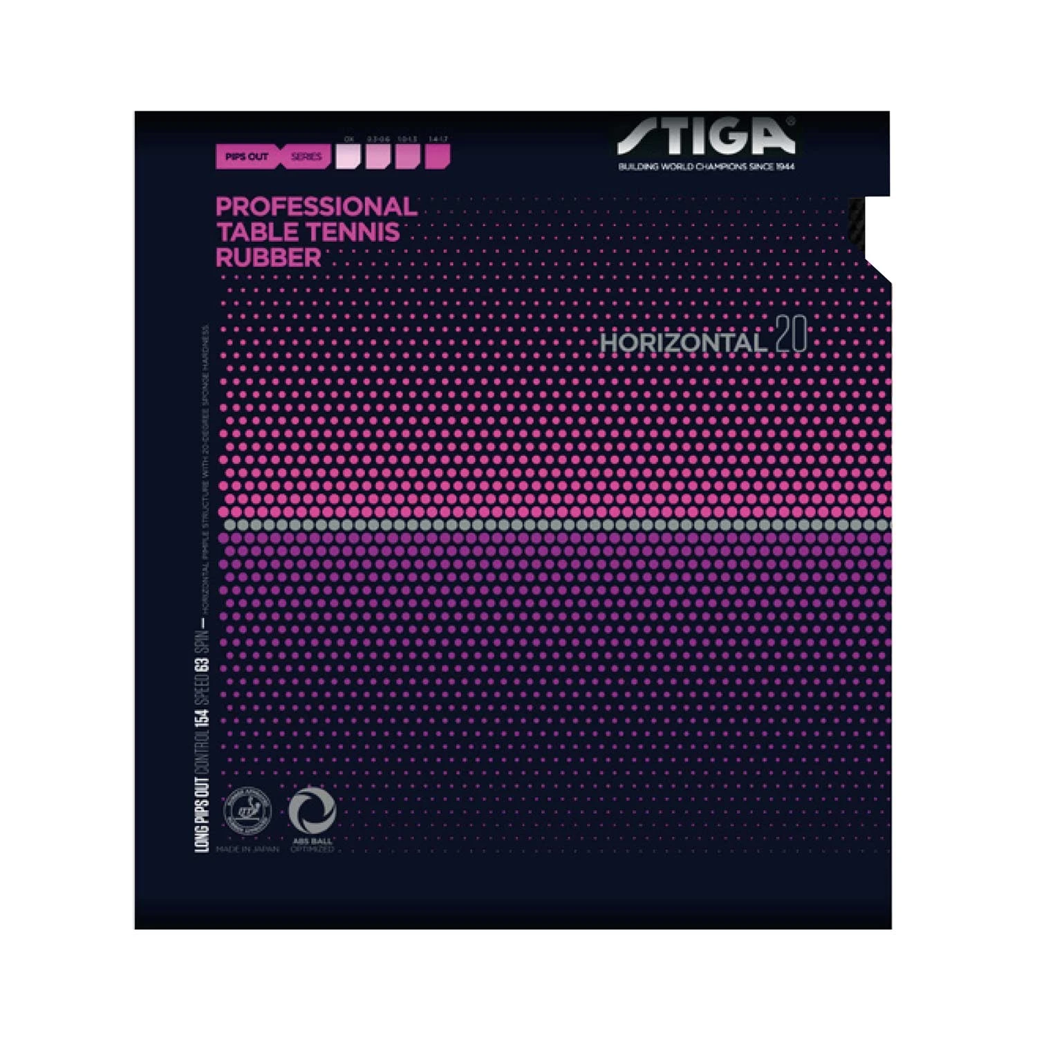 STIGA Horizontal sind unsere neuesten langen Noppen, die in enger Zusammenarbeit mit dem ehemaligen japanischen Nationalspieler Masato Shino entwickelt wurden. Die Noppen-Struktur der Horizontal 20 und Horizontal 55 ist in einem horizontalen Winkel angeordnet, der fĂŒr mehr Spin und Abwechslung sorgt. Diese BelĂ€ge werden in Japan hergestellt und speziell fĂŒr den ABS-Ball entwickelt, um den Spin des modernen Defensivspiels zu erhöhen.