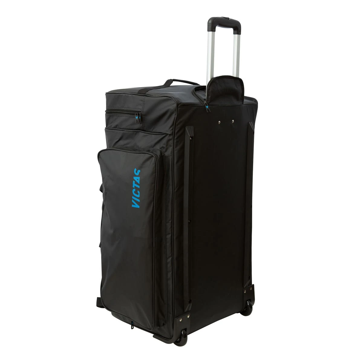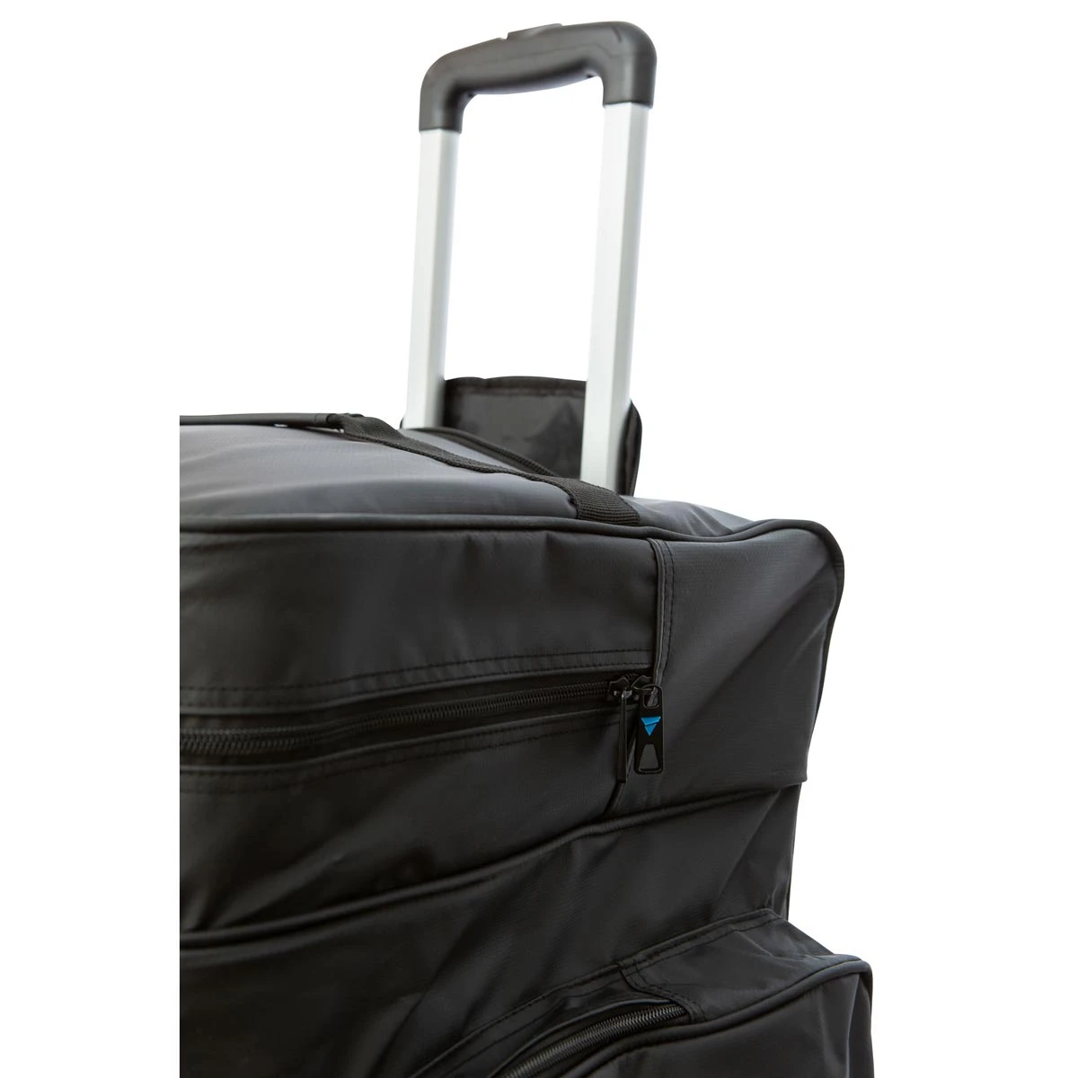 Geräumige Tasche aus robustem Tarpauline Polyester mit stabilen Rollen und praktischem, versenkbarem Bügel. Neben dem extra großen Hauptfach bietet der V-TROLLEY 419 mit dem separaten Nässe- und Schuhfach und dem großen Seitenfach sehr viel Platz und Flexibilität für Sport und Reisen.